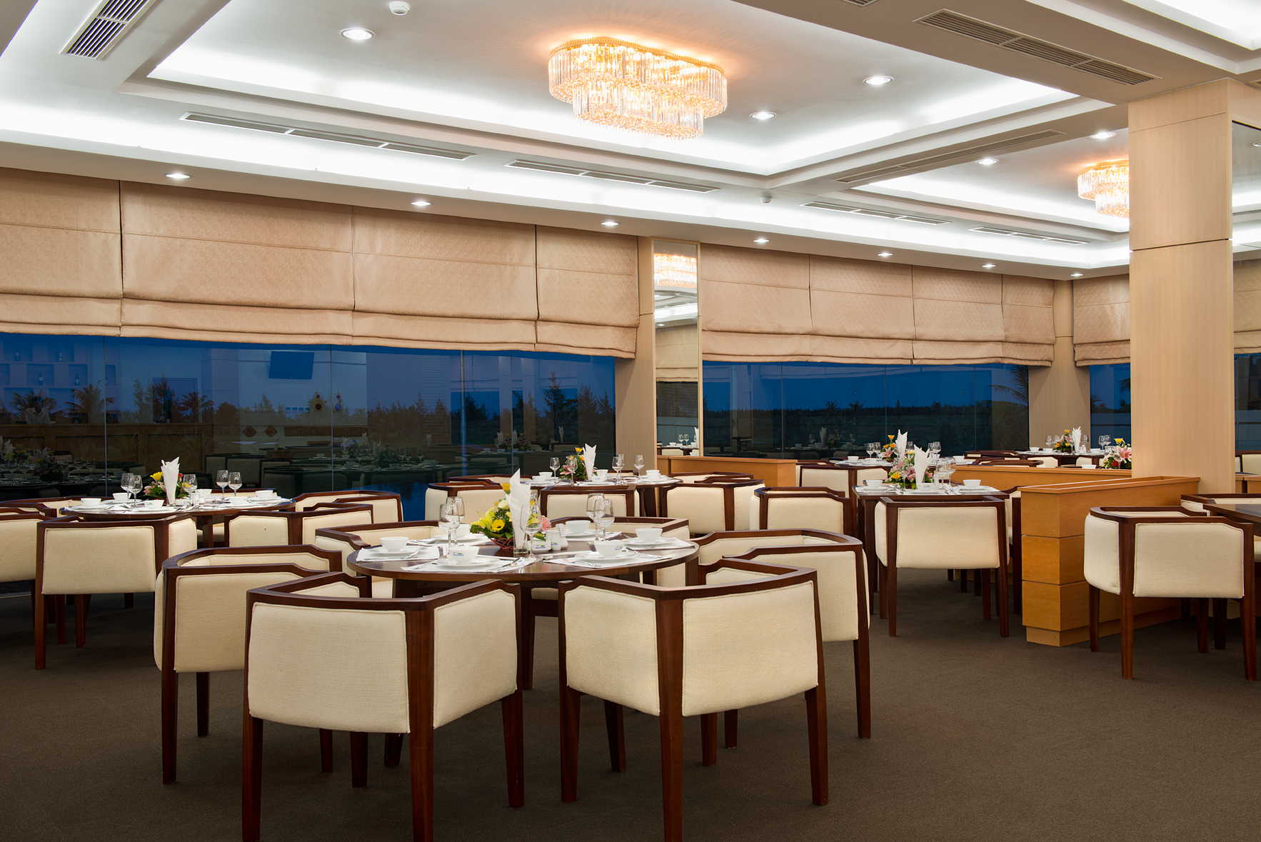Hãy cùng tận hưởng thực đơn đa dạng từ hải sản tươi sống đặc trưng của vùng biển Đồ Sơn đến những món Á - Âu tinh tế được chế biến bởi đội ngũ đầu bếp giàu kinh nghiệm. Với thiết kế mở hướng thẳng ra sân gôn xanh mướt và những rặng phi lao rì rào, mỗi bữa ăn tại đây đều trở thành một buổi tiệc của thị giác và vị giác.